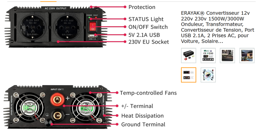 je dis faites attention à bien avoir des liaisons équipotentielles partout : je prends l'exemple de mon convertisseur 12/220 .