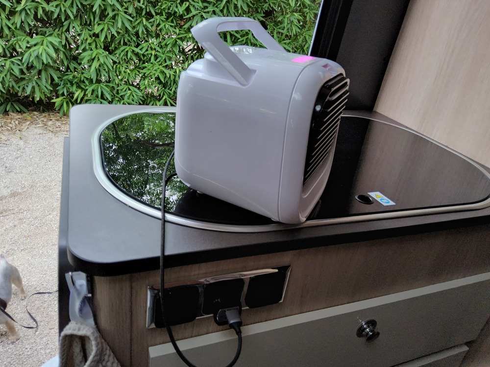 Certains l'ont lu dans un post du forum "impression 3D", j'ai acheté en prévision de mes vacances en Espagne, le petit rafraîchisseur d'air a 19€ de chez LIDL.